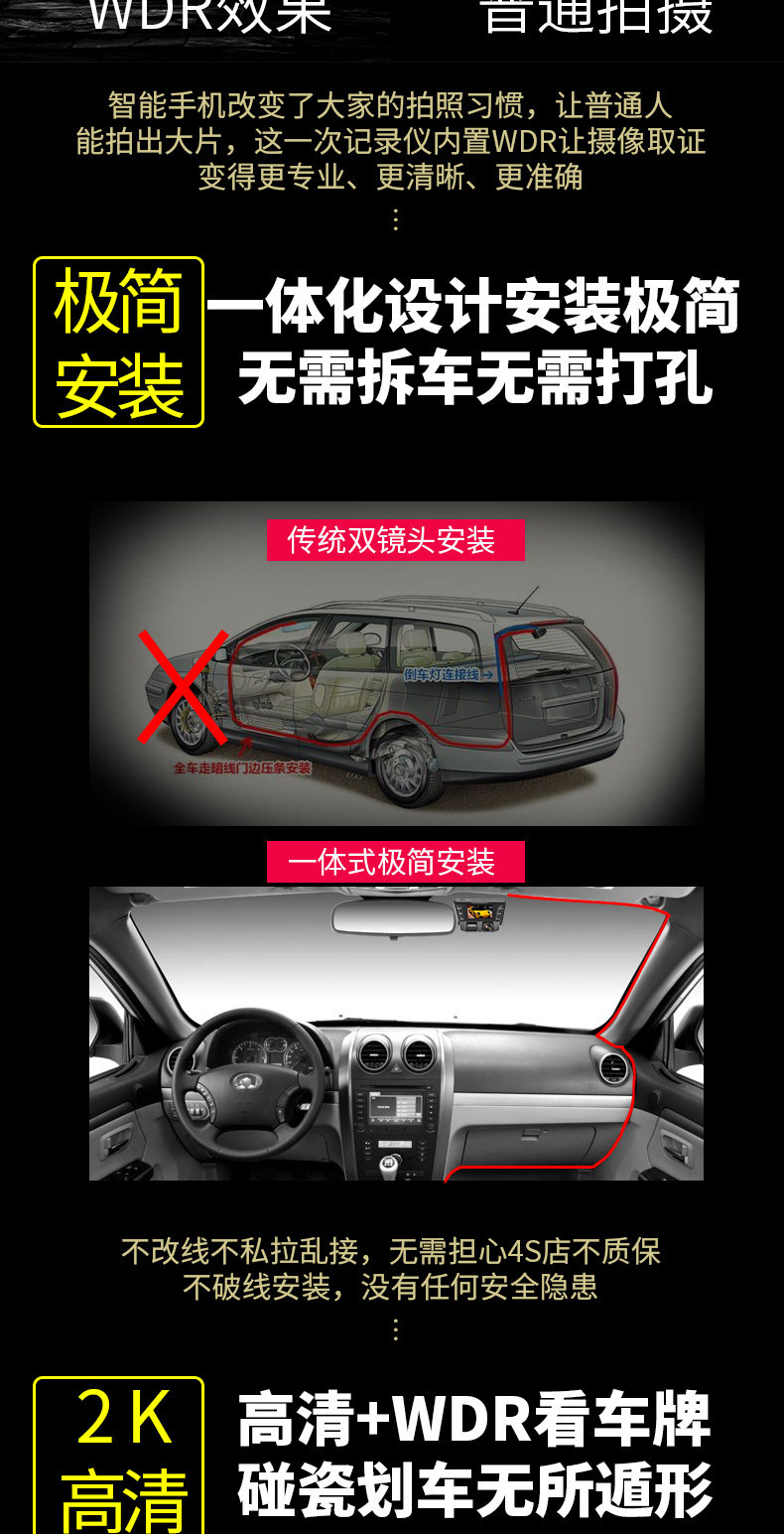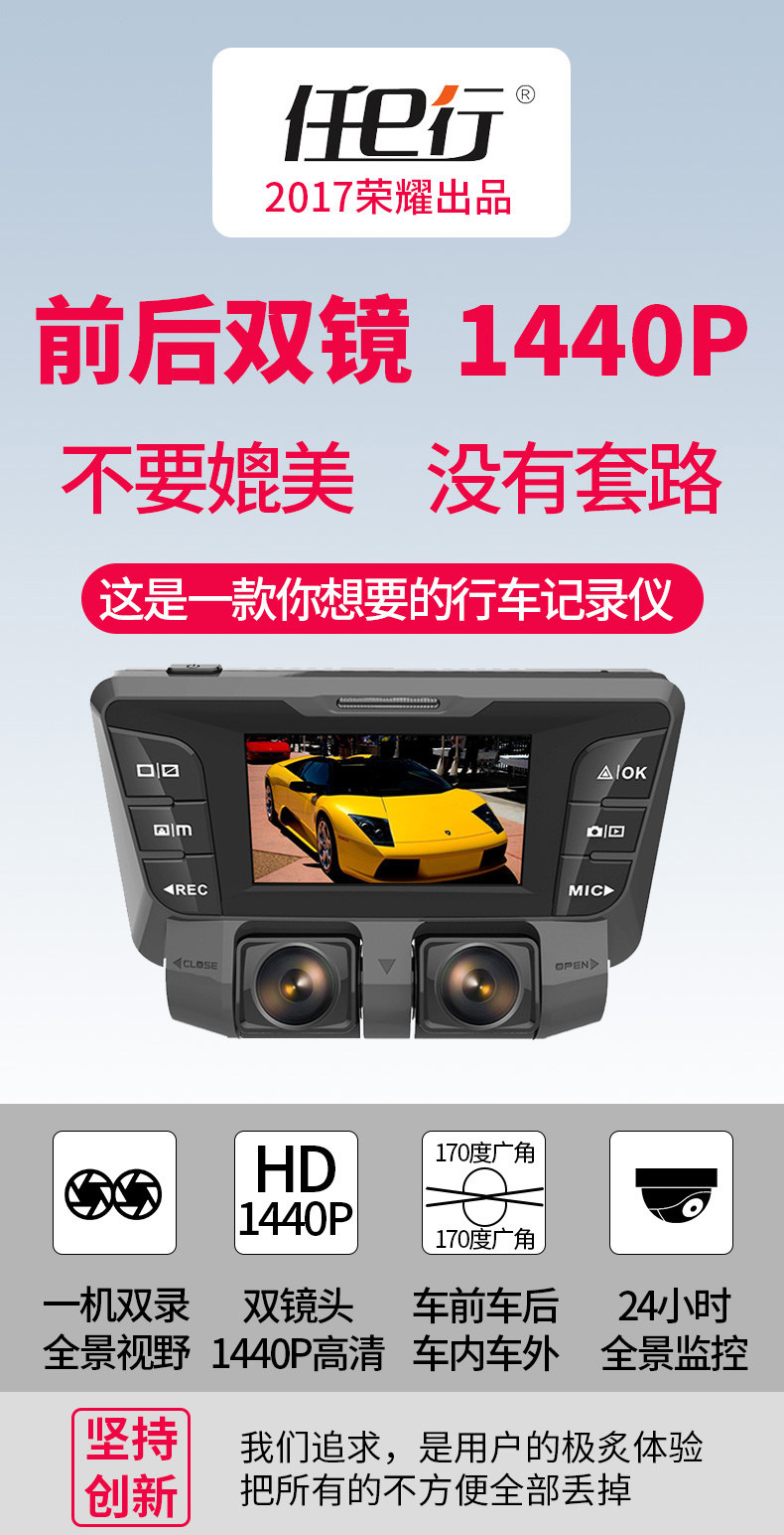 任E行新款行车记录仪高清夜视双镜头隐藏式全景24小时汽停车监控