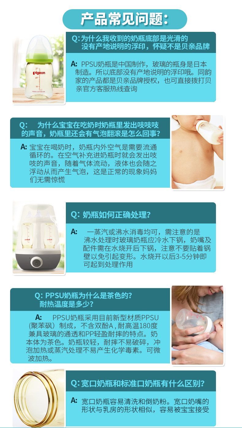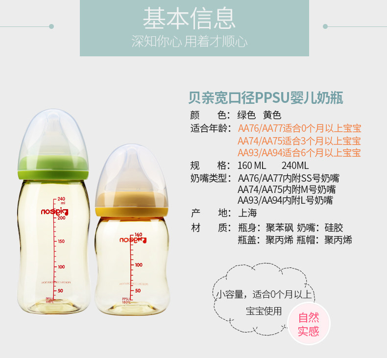 贝亲宽口径PPSU奶瓶 宝宝奶瓶 婴儿塑料奶瓶带吸管握把160/240ML