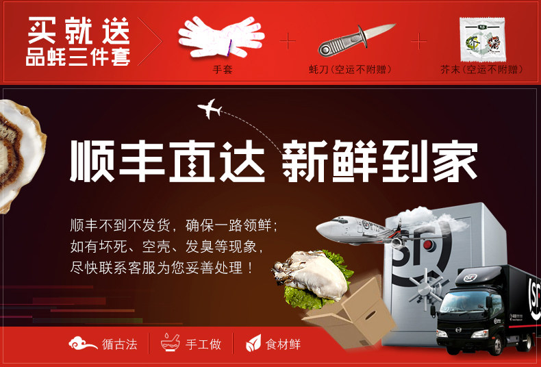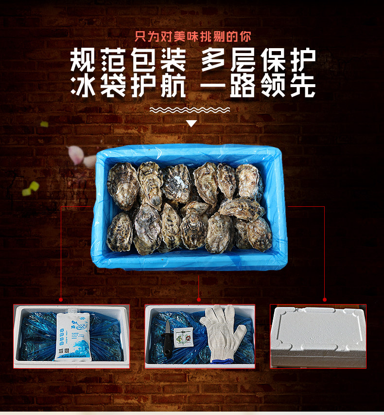 生蚝规格: L(70g(含)-90g(不含)) M(70g以下) XL(90g(含)-120g(不含)) XXL(120g及以上)