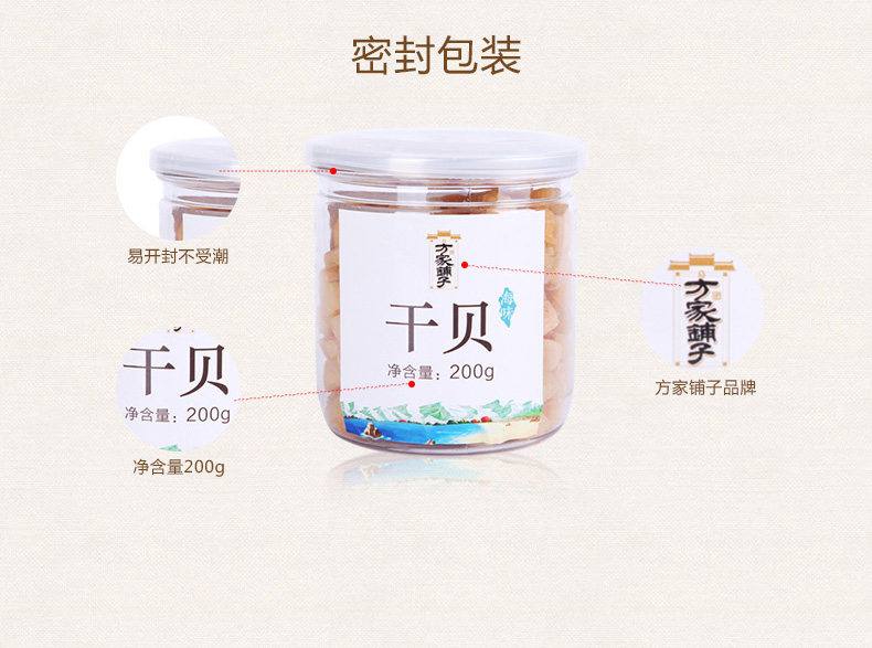 【天猫超市】方家铺子 干贝200g大连特产海鲜干货淡干瑶柱扇贝干