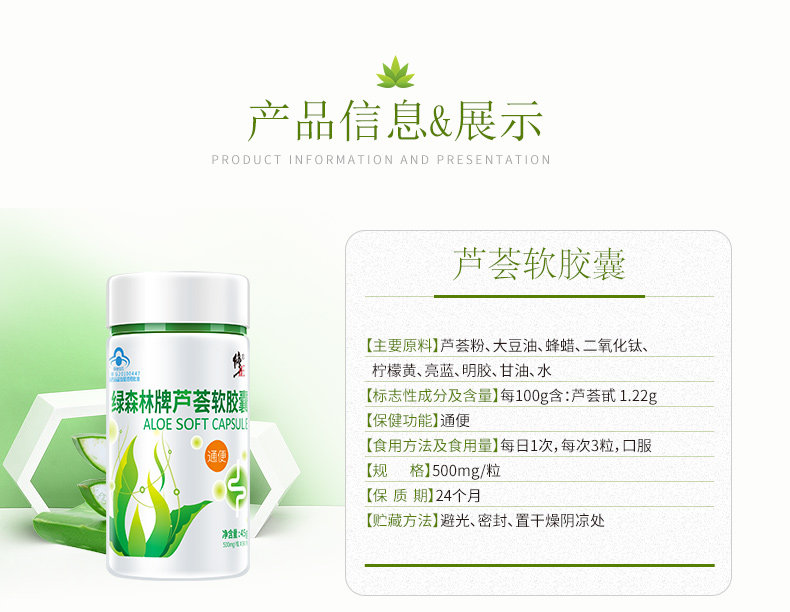 买2送1 修正 绿森林牌芦荟软胶囊 500mg/粒*90粒/瓶 通便