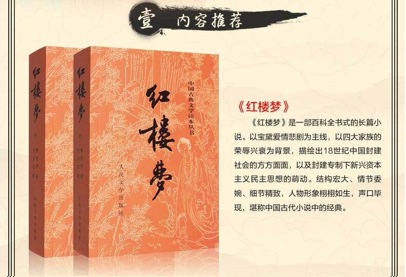《红楼梦(人民文学版)(套装上下册)》编辑推荐:如果你还在为了阅读或收藏价格昂贵的中国古典名著而在书架前徘徊,那么现在你不用愁了,该版的《红楼梦》,不仅价格便宜、印刷美观、装帧古朴,收藏、送人都让你特有面子!实为古典小说的佳普及本!国内权威版本!畅销三十余年,行销四百万套。冯其庸先生领衔,中国红学会专家集体校注,人民文学出版社组织专家十余年编校,历经三次修订。2008年新版电视剧《红楼梦》导演李少红指定唯一底本。