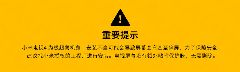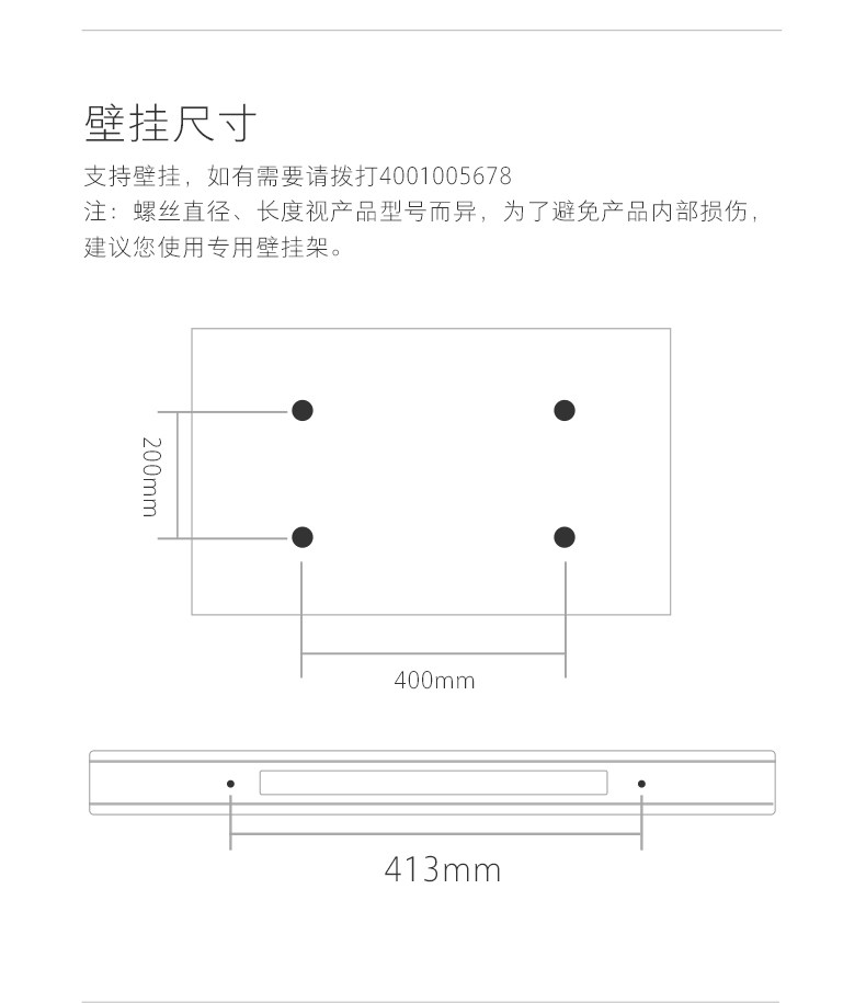 用于墙面挂装,由小米授权服务商安装