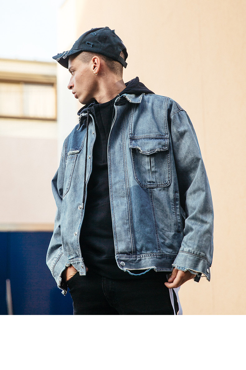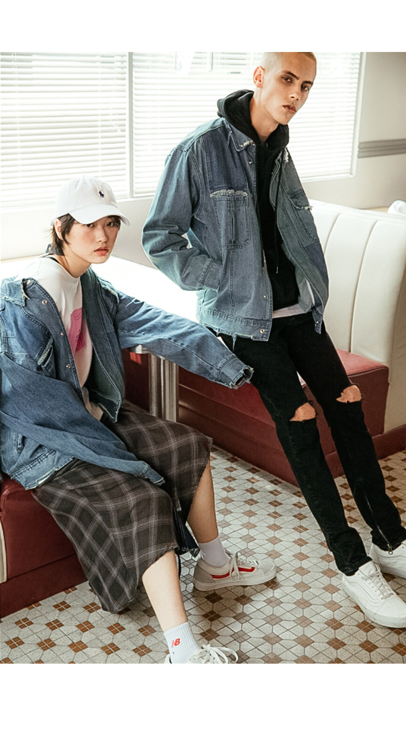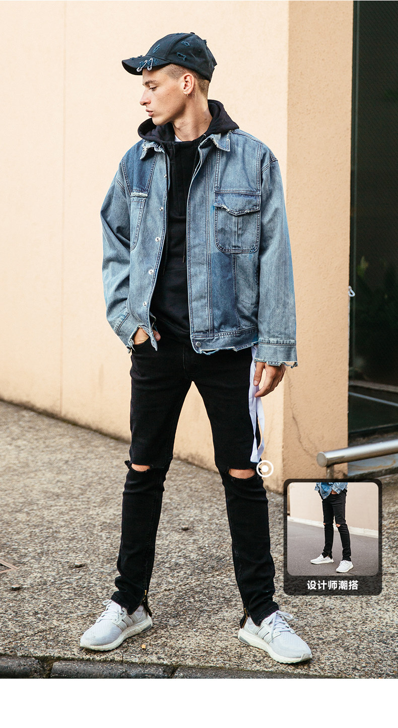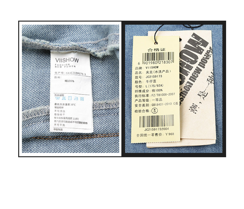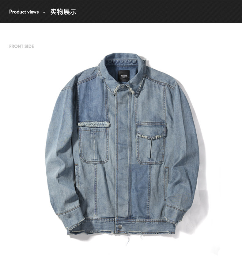 viishow秋季牛仔飞行员夹克男中国有嘻哈TT同款潮男士情侣外套8