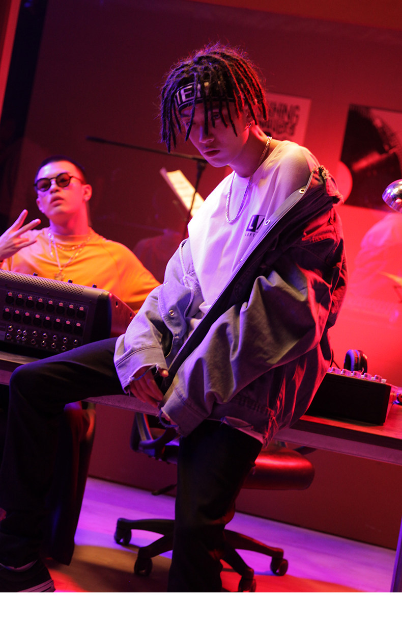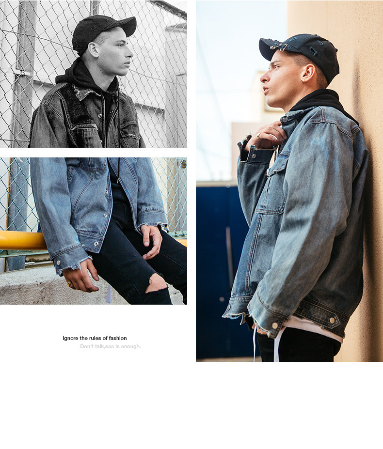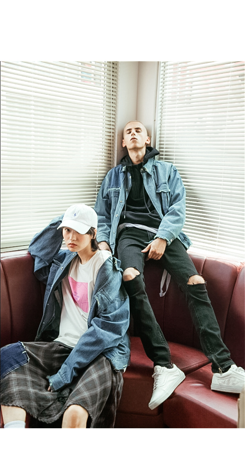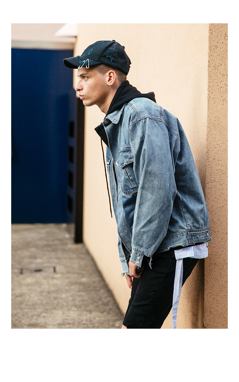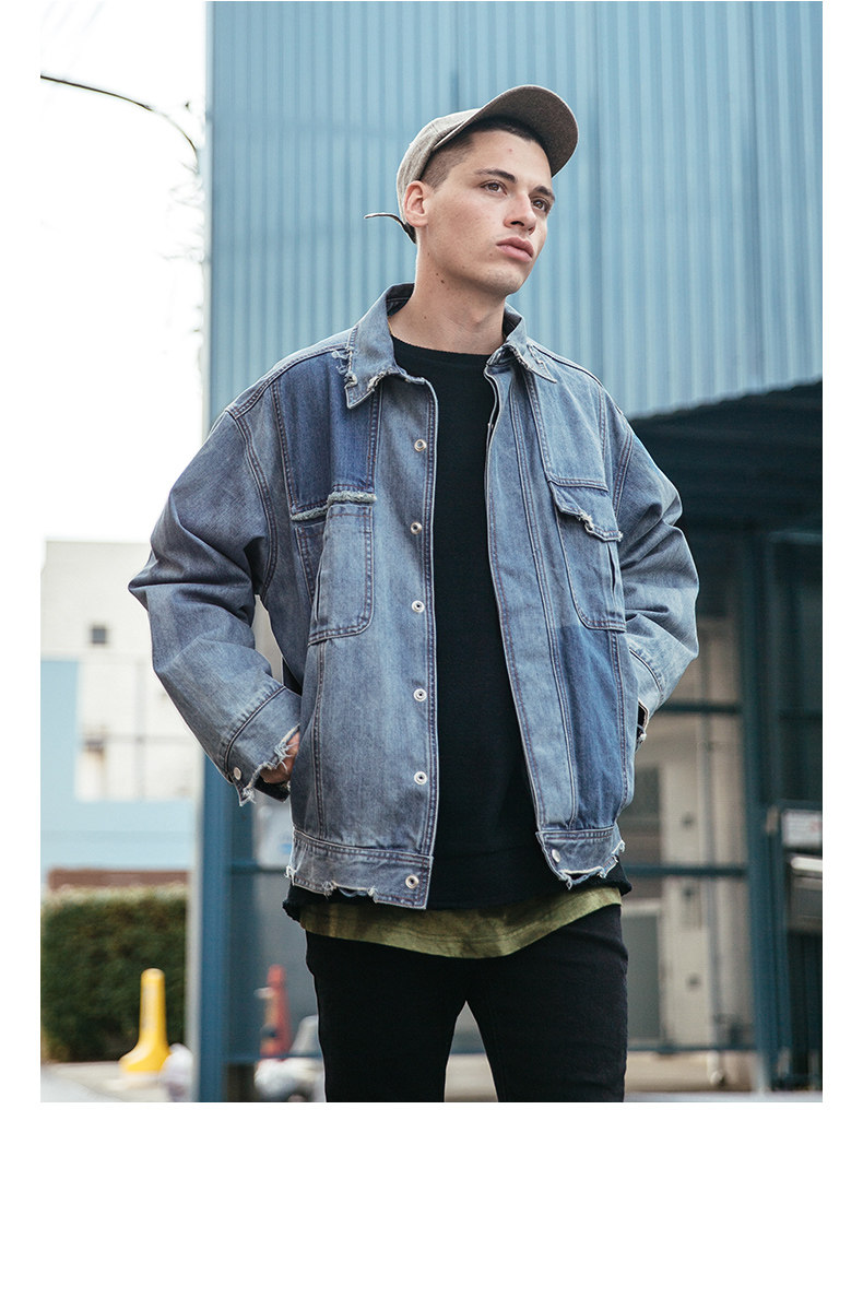 viishow秋季牛仔飞行员夹克男中国有嘻哈TT同款潮男士情侣外套8