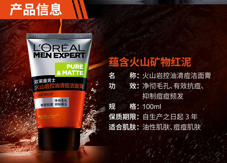 欧莱雅单品: 男士火山岩控油清痘洁面膏