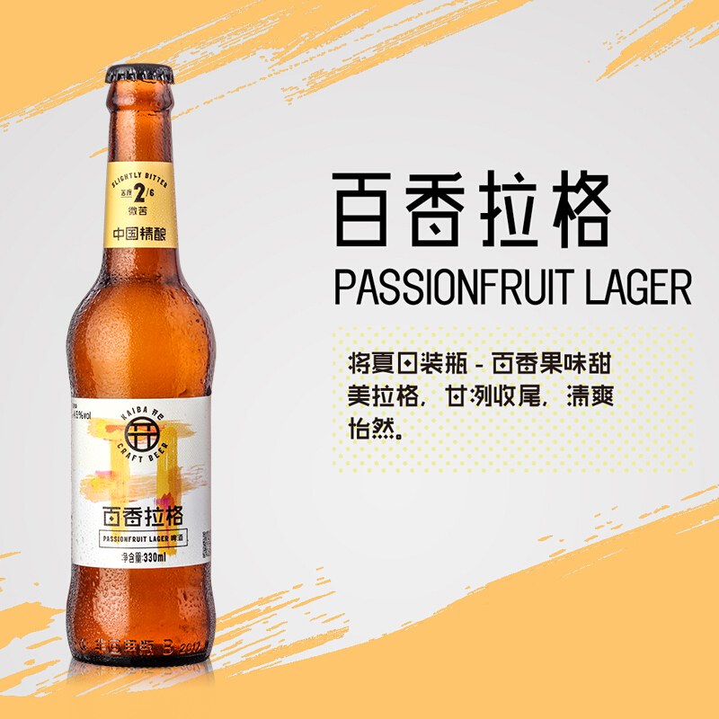 1919酒类直供 开巴百香拉格(精酿)啤酒330ml*6瓶整箱装 百威英博