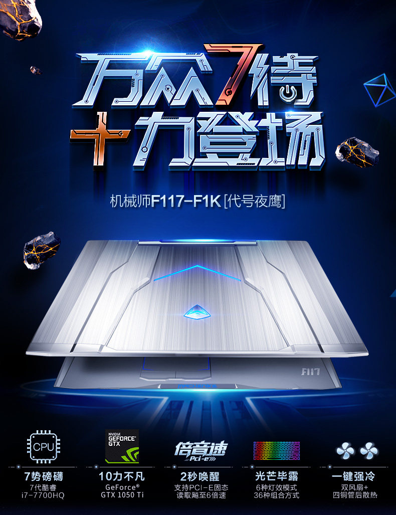 MACHENIKE 机械师F117 F1K i7独显gtx1050ti游戏本手提笔记本电脑