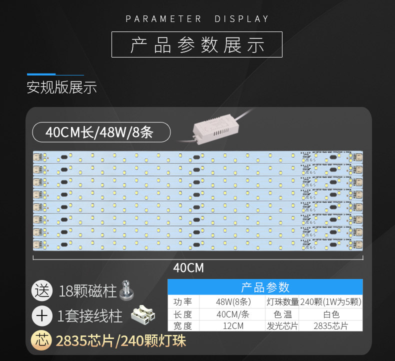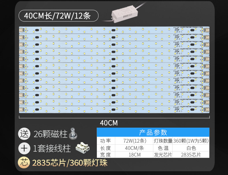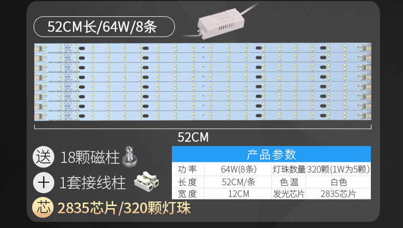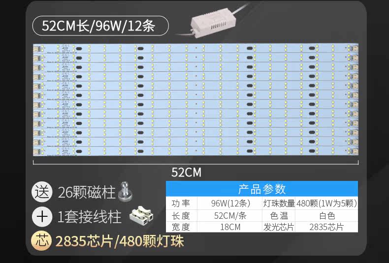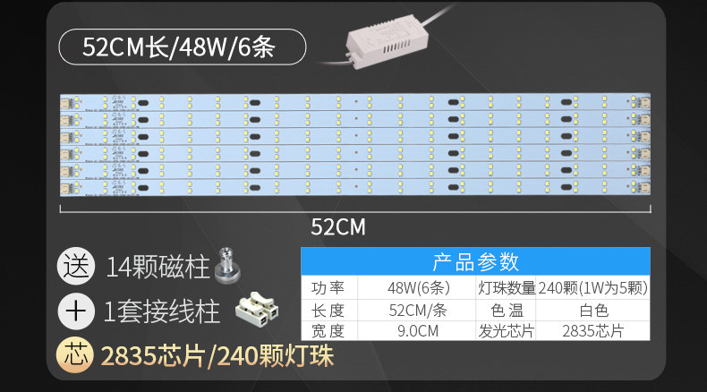 颜色分类: 黄金安规款40CM48W8条 黄金安规款40CM72W12条 黄金安规款52CM48W6条 黄金安规款52CM64W8条 黄金安规款52CM96W12条