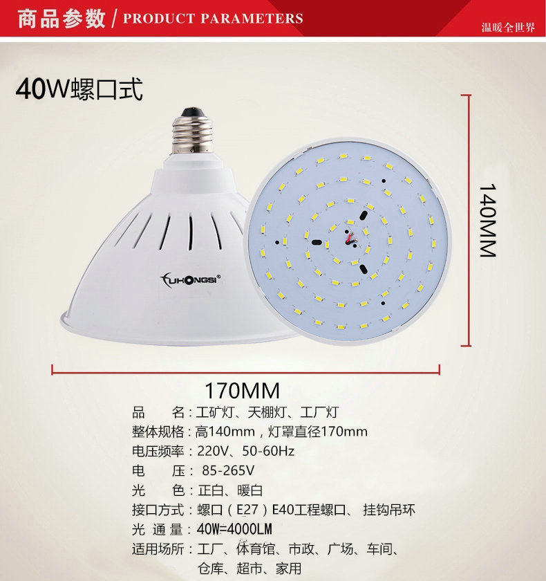 led工矿灯超亮led灯泡节能E27e40led螺口灯泡工厂灯车间仓库照明