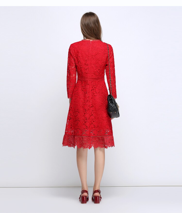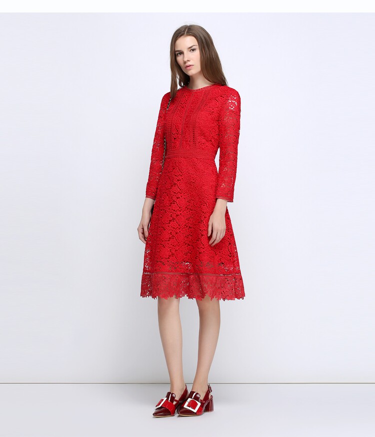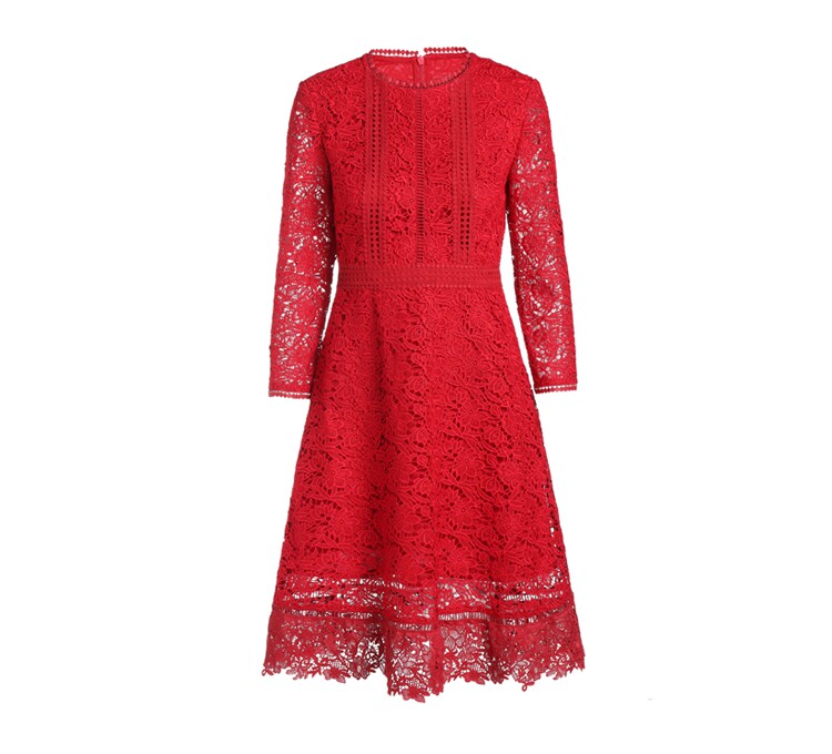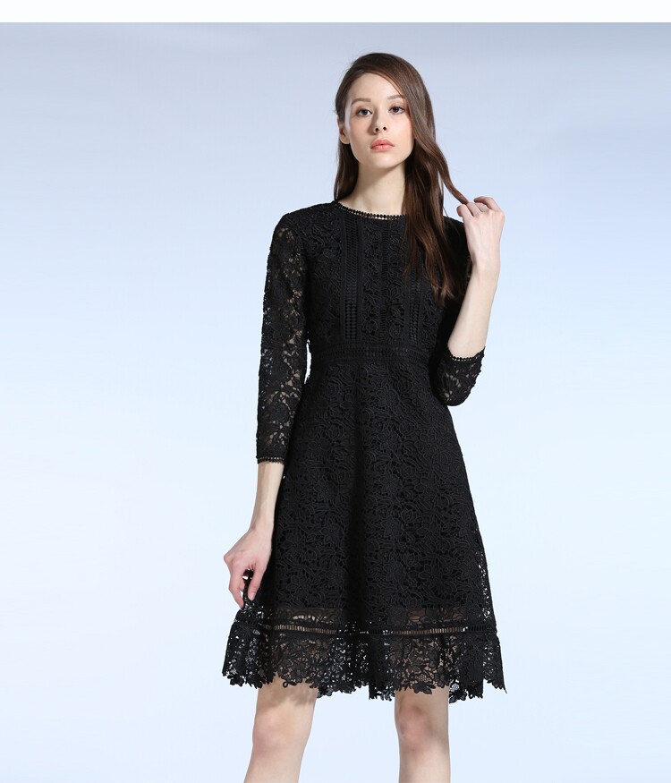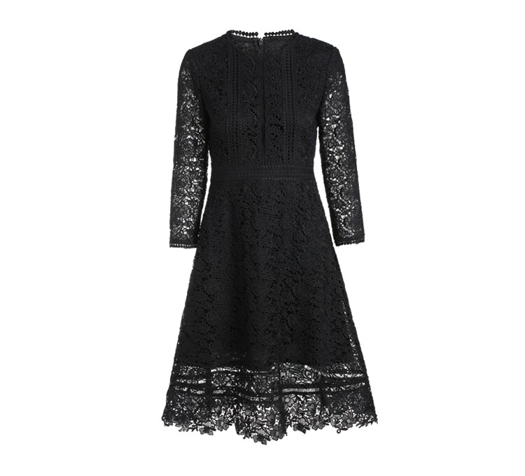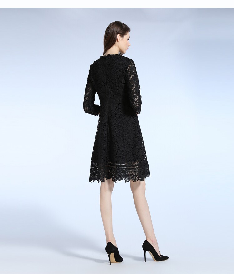 Five Plus新女秋装纯色刺绣镂空高腰圆领长袖连衣裙2HF4080970