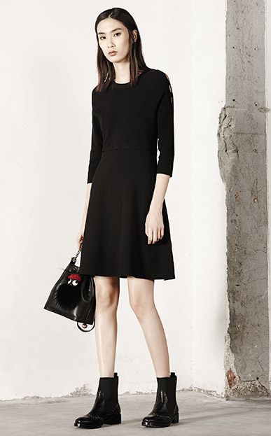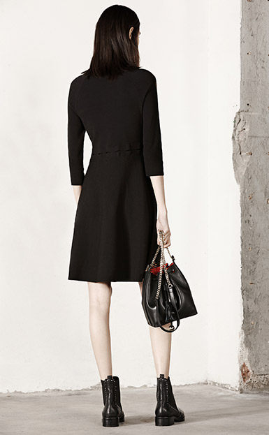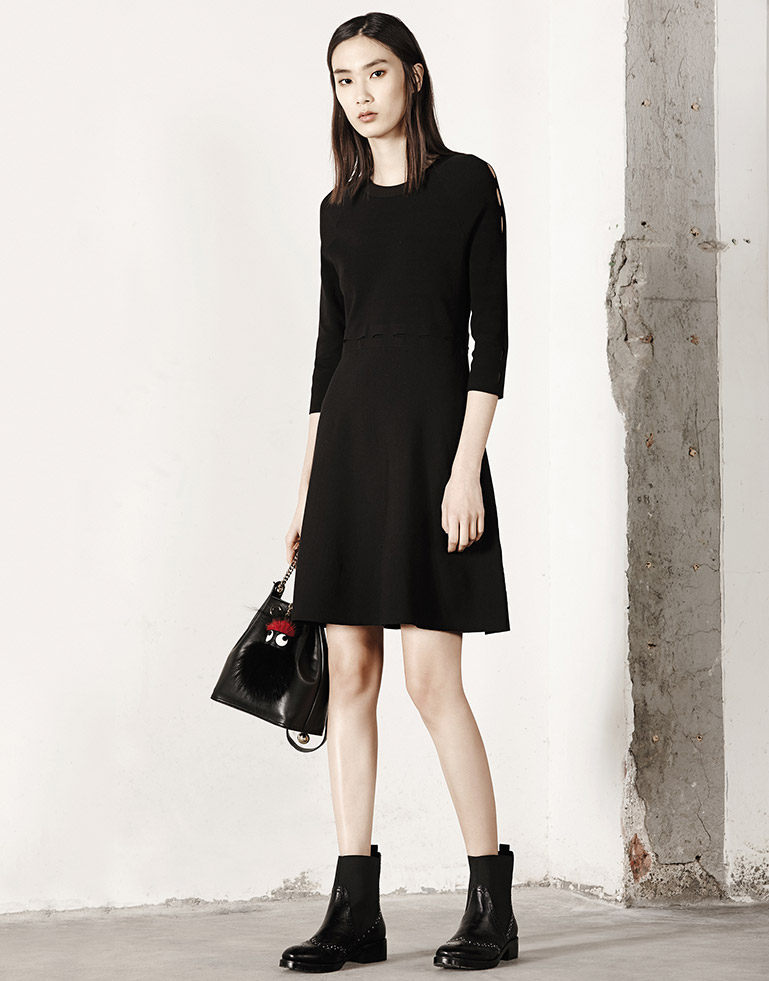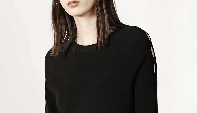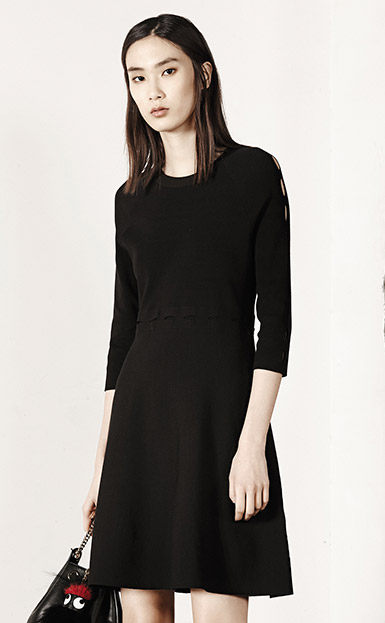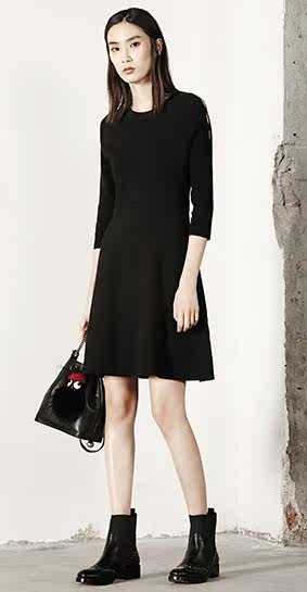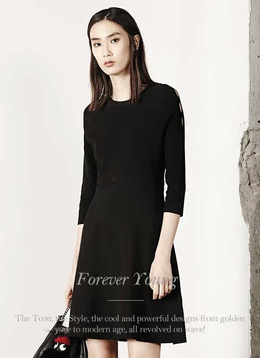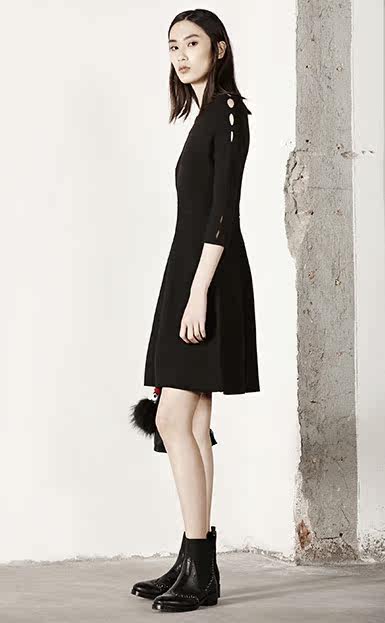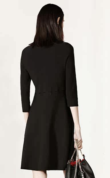 MOCO七分袖修身A字镂空中长款针织连衣裙MA1633DRS06 摩安珂