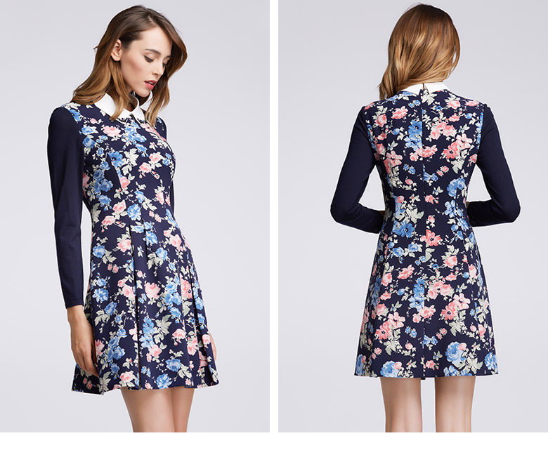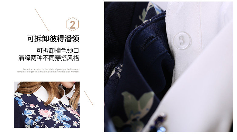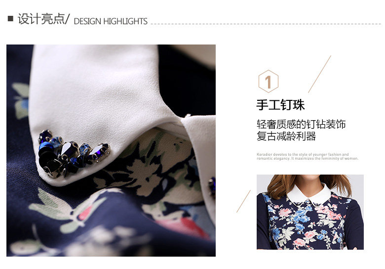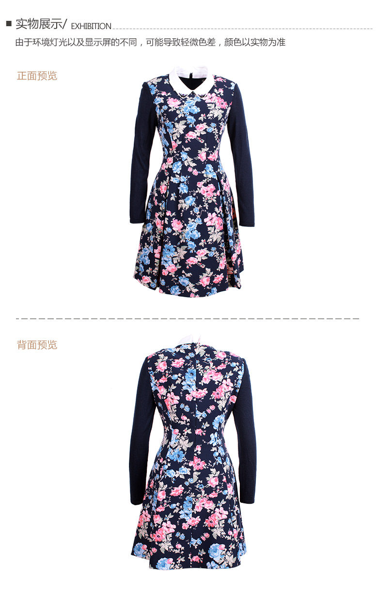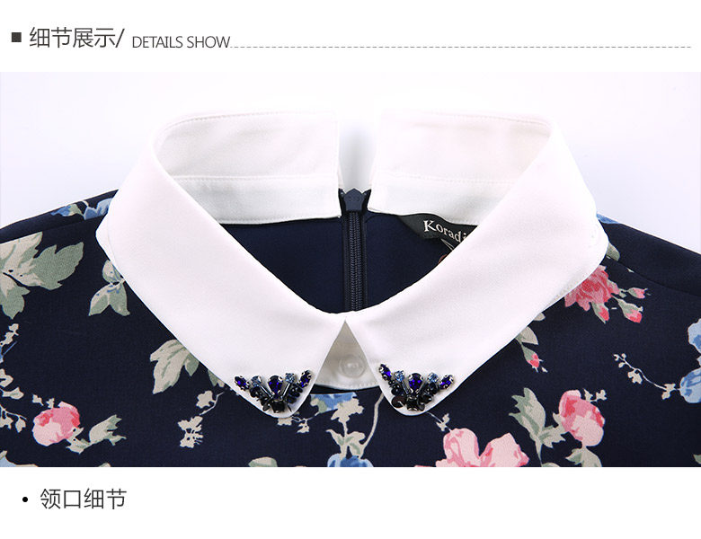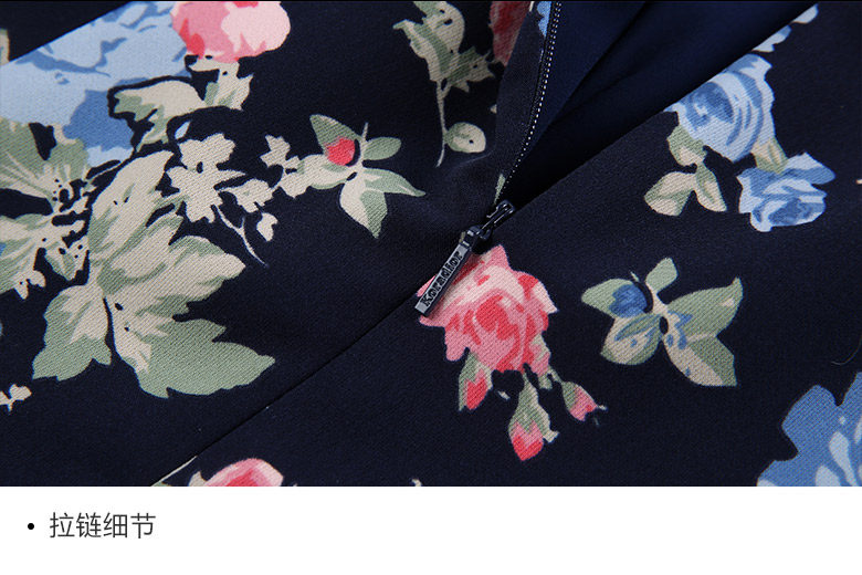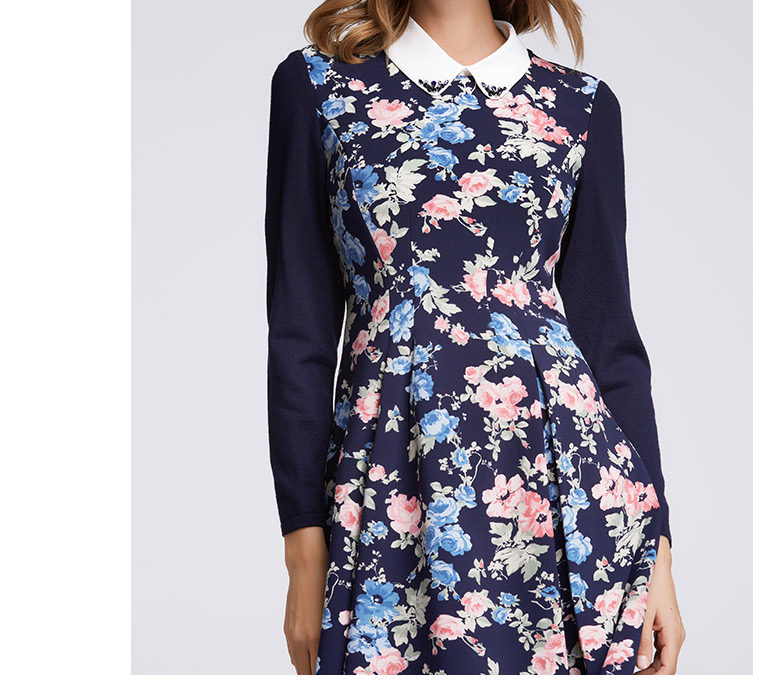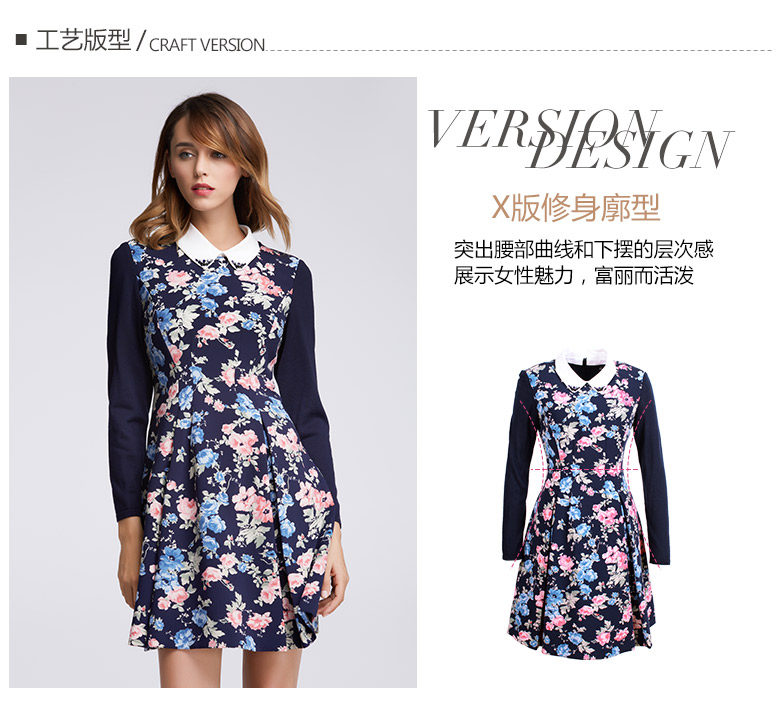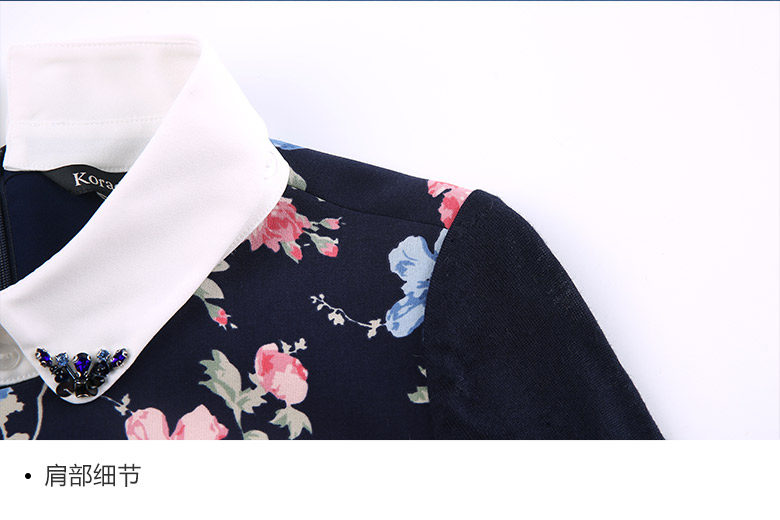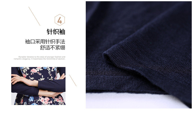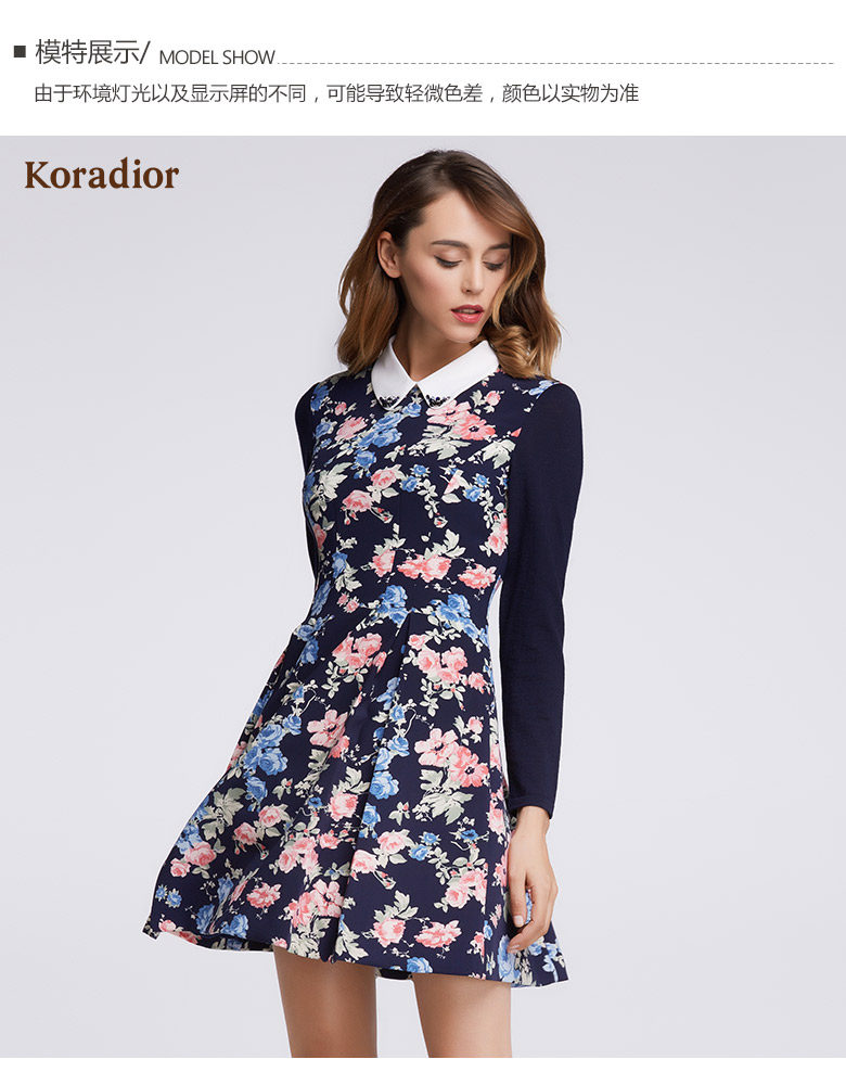 Koradior/珂莱蒂尔正品韩版夏季时尚复古印花修身羊毛长袖连衣裙