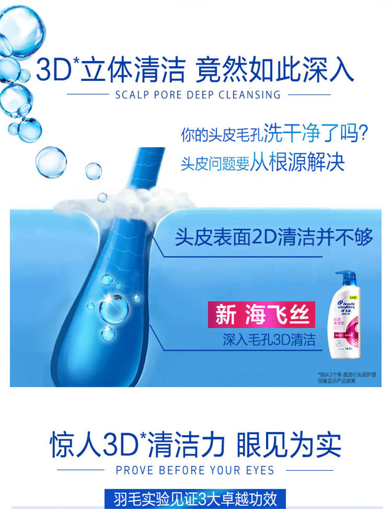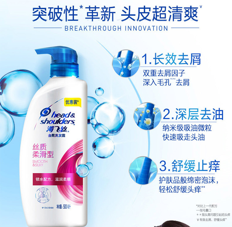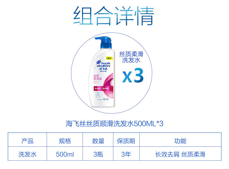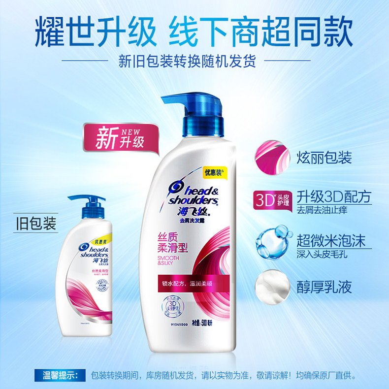 海飞丝洗发水丝质柔滑去屑止痒洗头露膏套装男女士500ml*3正品