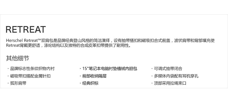 Herschel Retreat 中国限量款双肩背包 休闲背包潮包
