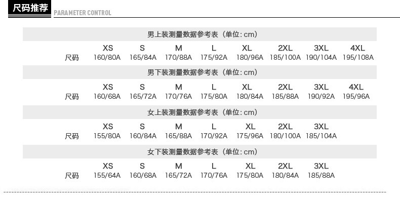 尺码: S/165 M/170 L/175 XL/180 2XL/185 3XL/190