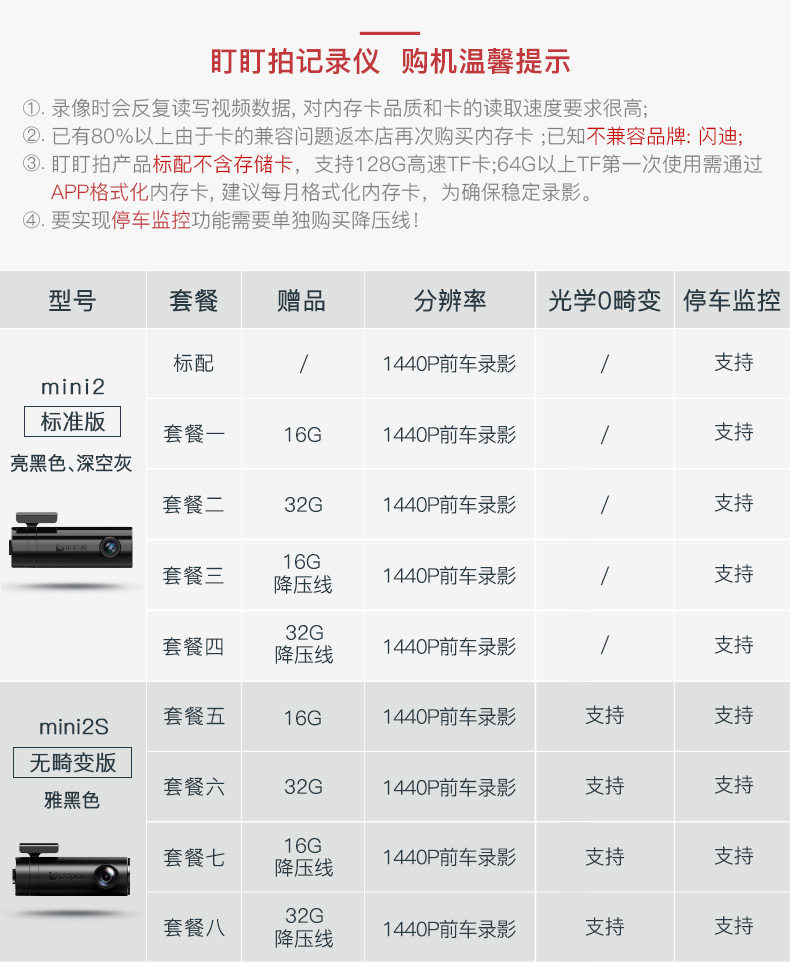 盯盯拍mini2行车记录仪高清夜视无线wifi1440P迷你隐藏式智能车载